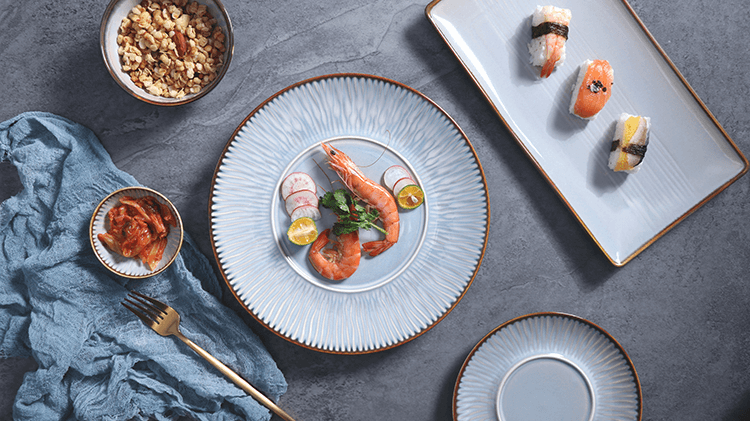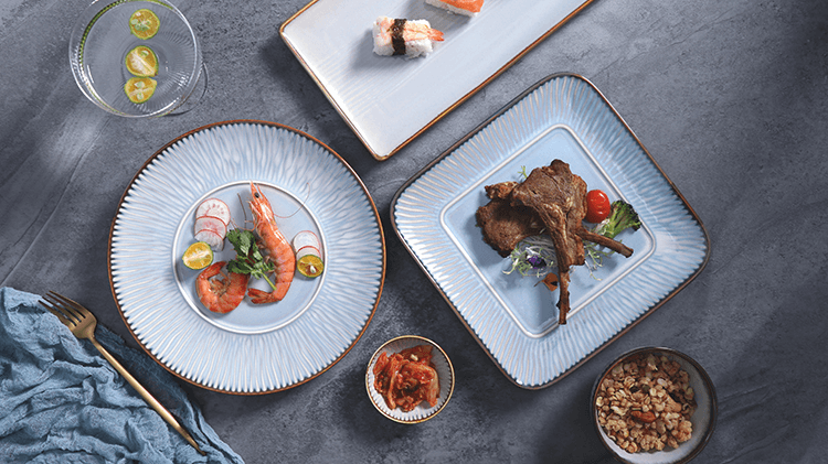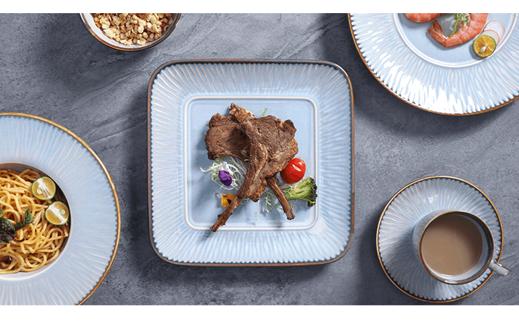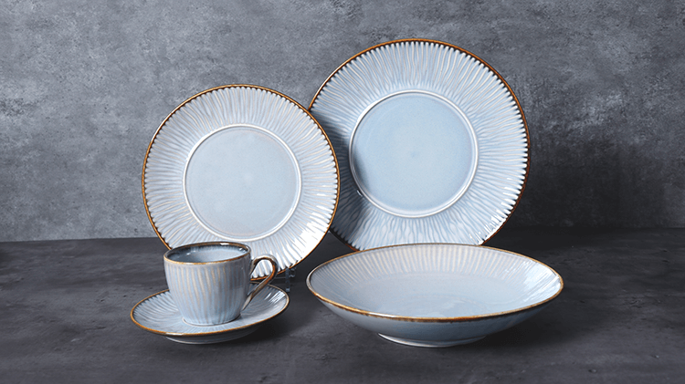 Столовая посуда из костяного фарфора с тиснением из золота.