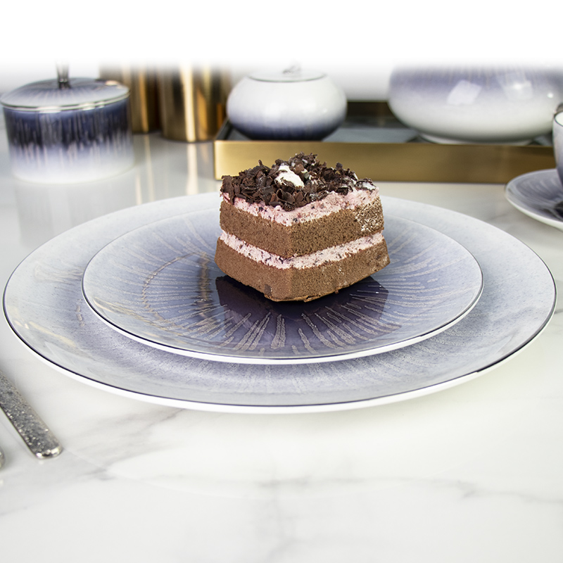 Столовая посуда для ресторана Michelin Bone China Sky Light Blue Обеденные тарелки Золотая оправа Spot Посуда для отеля