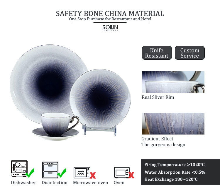 Гуанчжоу Поставщик гостеприимства Бортовое питание Роскошная столовая посуда Столовая посуда из костяного фарфора Тарелки