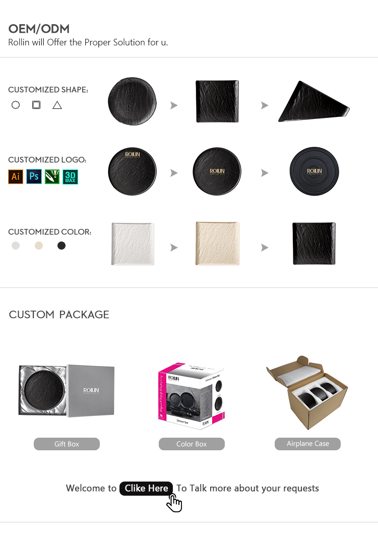 Если вы торговый посредник, покупатель вашего ресторана хотел бы сделать заказ.Лучший выбор для перепродажи на полках или по 3-12 штук в наборе.У нас есть много тарелок разных размеров и форм.Не стесняйтесь отправить запрос, чтобы попросить каталог проверить.